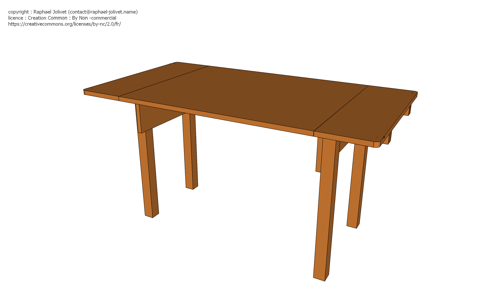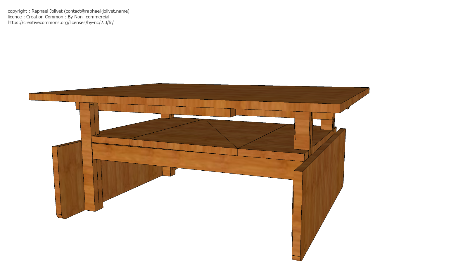 Je partage ici le design final, réalisé sur Sketchup . Le tout est partagé en licence Créative Common By-NC : utilisation et reproduction autorisées, avec mention de l’auteur, pour une utilisation non commerciale.
